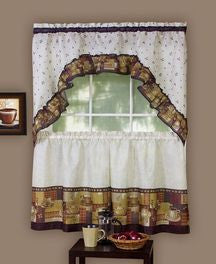 Coffee - Cappuccino, café and late make a charming addition to any kitchen background is a linen - like texture ground with coffee beans. Rich chocolate brown for rod pocket and borders of design.
