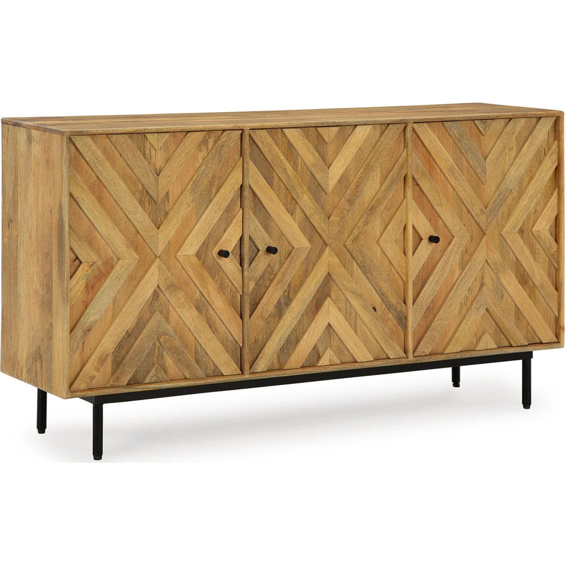 Your search for simple, chic design ends here. A versatile stunner, this accent cabinet adds a sophisticated aesthetic with diamond-patterned drawer fronts and a warm natural finish. It's gorgeous and ready to serve as a buffet or console.